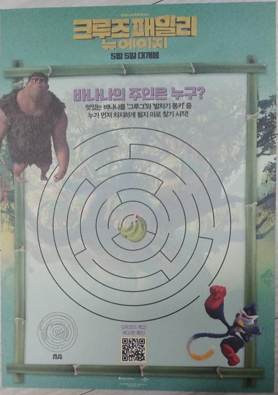 매표소에 가서 엽서한장을 받게 된다. 미로찾기 게임을 할 수 있는 엽서인데 영화를 본 기념으로 집에 가져오게 되었다.