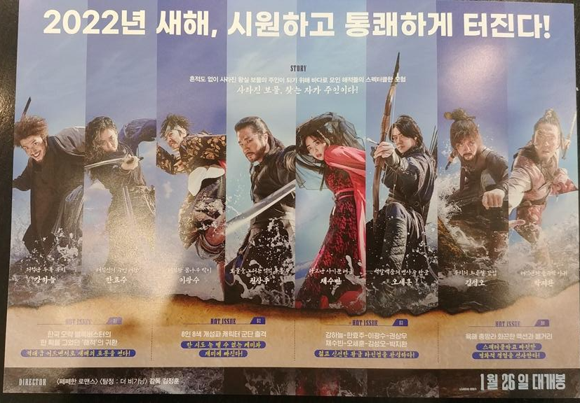 이 영화를 보기 전에는 이전에 나왔던 해적이라는 영화보다 재밌을 것 같기 때문에 보러오게 되었는데 좀 약간 실망스러웠다. 이 영화 스케일도 좀 그렇게 큰 것 같지 않았고, 배를 타고 다니는 활동 무대가 커 보이질 않아 아쉬웠다. 여러가지 코믹한 상황 설정도 많이 들어간 듯해 보였는데 그렇게 배꼽잡고 폭소를 터트릴 만한 웃기는 상황들은 많지 않은 듯 하다. 뭔가 결말이 약간 아쉬운듯 했고 이전에 봤던 해적이 정말 완성도 높았다고 생각한다면 이 영화는 안보는 것이 좋을 듯 하다. 그냥 배우들의 열연은 볼만했다고 생각한다.