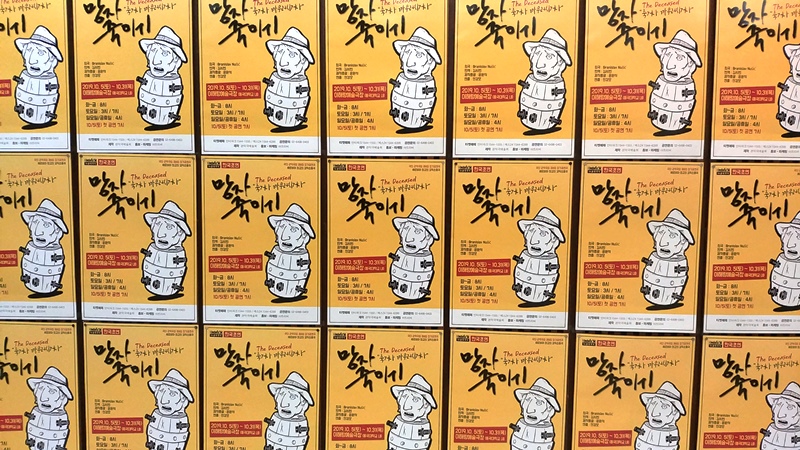 지하에는 망자 죽이기 포스터가 아주 많이 붙어 있었다. 배경이 노란색으로 되어 있다보니 사진이 잘 나올꺼 같았다.