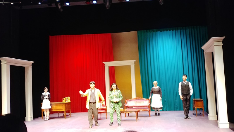 망자 죽이기 세트장이 꾸며진 것을 보니 뒷 배경을 커텐으로 장식해 놓은 것이 보였다. 그리고 이 극장은 무척 큰 예술극장이라서 소리가 잘 들릴지 의문이었는데, 역시나 연극시작하자 마자 주인공의 대사가 잘 들리지 않아 무척 당황스러웠다. 마이크 하나 없이 대사를 하니 알아들을 수 없는 대사가 좀 있어서 무척 답답했다. 연극의 이야기는 어떤 한 사람이 여행을 떠났는데 사고가 나 죽은 것으로 착각하고 살고 있는 상황에서 갑자기 살아돌아면서 일어나는 헤프닝을 그린 연극이었다. 죽지 않은 사람이 죽은 줄 알고 있다가 살아돌아와서 벌어지는 한 대가족의 헤프닝이 우스꽝스럽게 표현이 되어 있는데 필요하지 않은 것 같은 대사들도 무척 많은 듯 보였다.